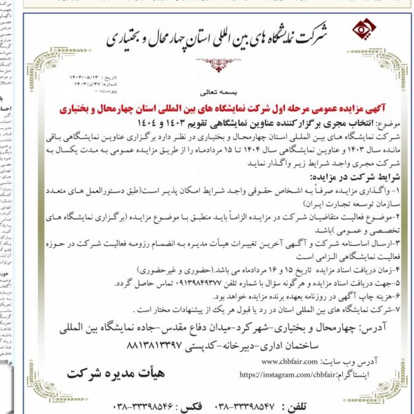 - درج آگهي تبلیغاتی در وب سايت نمايشگاه