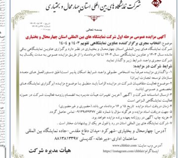 تقویم شش ماهه دوم سال 1399Adminمارس 13, 2022شرکت نمایشگاه های بین المللی استان چهار محال و بختیاری ردیف عنوان نمایشگاه زمان برگزاری 1 دومین نمایشگاه تخصصی صنایع ... ادامه مطلب